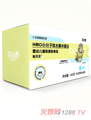 朵小西勄貝安HMO小分子肽水解米蛋白嬰幼兒罐裝輔助食品,敏寶輔食新選擇!嚴(yán)苛采用GB10770嬰標(biāo)標(biāo)準(zhǔn),每100g中,骨膠原蛋白肽添加量2500mg,特別添加2'-巖藻糖基乳糖,以及羅漢果粉、雞內(nèi)金、麥芽等藥食同源成分,專利配方,科學(xué)配比,更營(yíng)養(yǎng),更健康。